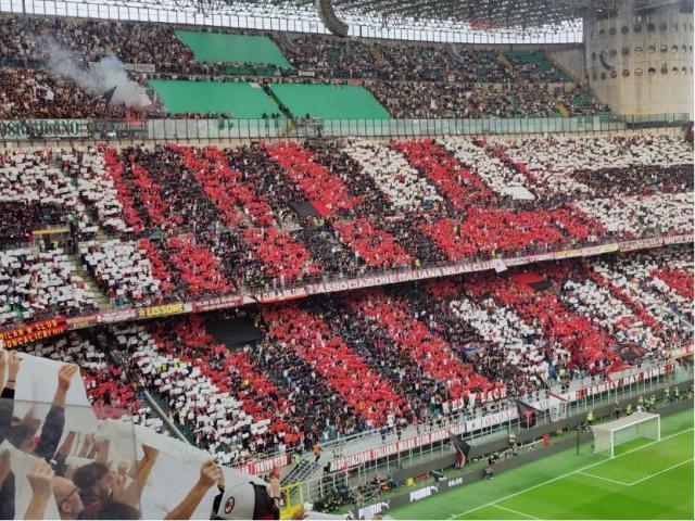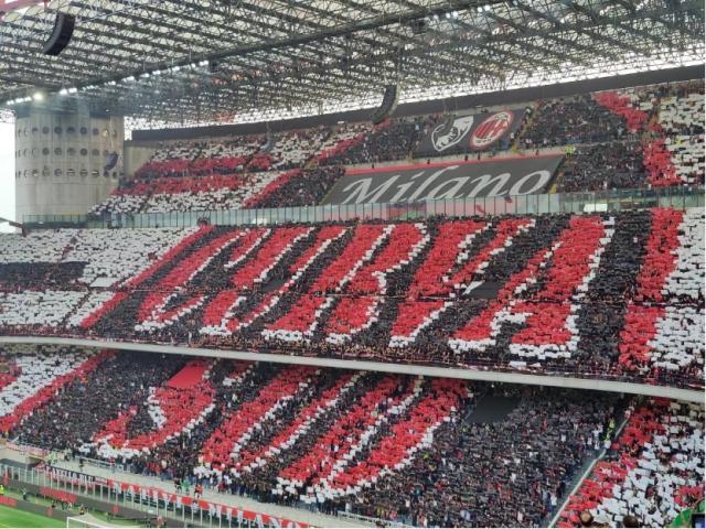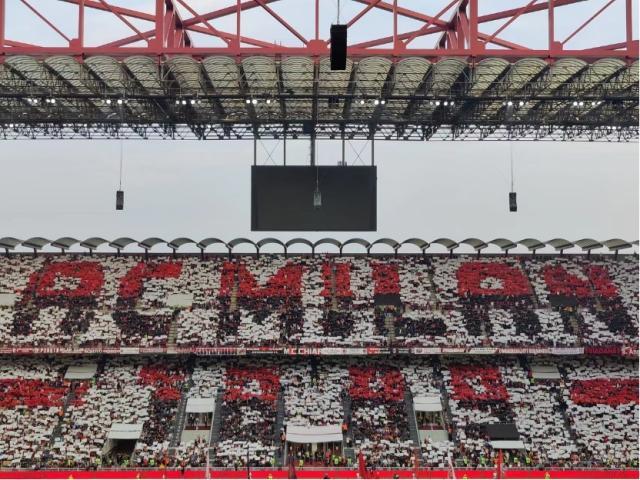 然而踏上球场的两支球队别无选择,“对抗”是今天唯一的主题。周中斯坦福桥的噩梦,依然在皮奥利的脑海中萦绕,而对于阿莱格里来说,他的球队刚刚连胜博洛尼亚和海法马卡比,一缕微光在远处浮现,他不想重新回到黑暗。赛前依序报幕,博努奇的名字出现在大屏幕上,毫无悬念地收获了额外的分贝。比赛即将开场,圣西罗打出环绕全场的沉浸式横幅,米兰队徽、南看台标志、意大利国旗和冠军盾、以及“AC米兰1899”的字样,分别在四面看台上出现。横幅由每个球迷在座位上找到的色板完成,他们已经完成了群众演员的任务,现在该欣赏表演了。