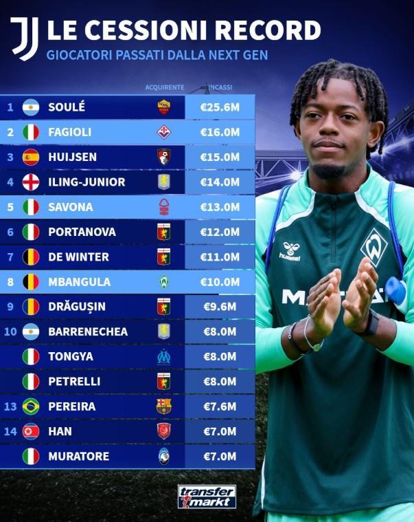 开云百家乐-尤文青训卖人榜:苏莱2560万欧去罗马居首,法乔利第二赫伊森第三