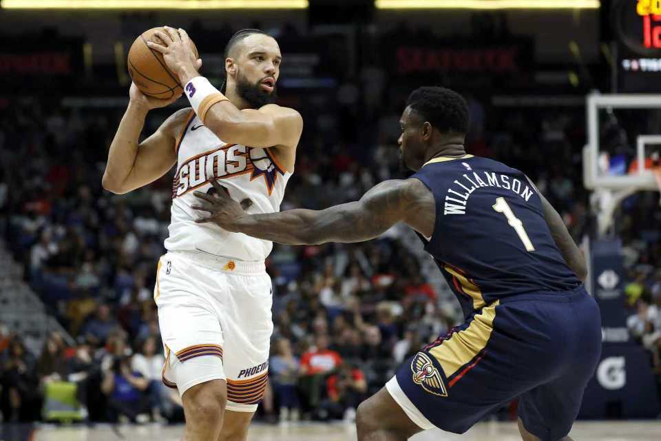 太阳过去两场连赢湖人与鹈鹕收获2连胜,鹈鹕过去两场连输骑士与太阳遭遇2连败,本赛季前两次交锋太阳均取胜,前一天太阳客场115-108战胜鹈鹕。本场鹈鹕缺少穆雷与琼斯,太阳缺少杰伦-格林、阿伦、邓恩。首节双方早早开启对攻模式,前3分钟太阳6-7落后,太阳一波7-2攻势反超4分。墨菲三分命中,太阳连得5分扩大优势,并在之后继续维持23-18领先优势。墨菲与锡安联手持续得分反超比分,首节结束太阳32-33落后鹈鹕。首节太阳三分14中5,狄龙7中4得到10分与布克6中2仅得到5分,鹈鹕三分9中4,墨菲3记三分11分与锡安8分。